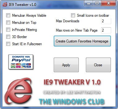 IE9 Tweaker là một công cụ miễn phí, cho phép người dùng điều chỉnh và tùy biến giao diện của trình duyệt Internet Explorer 9 (IE9) nhằm đáp ứng tốt hơn nhu cầu sử dụng cá nhân.