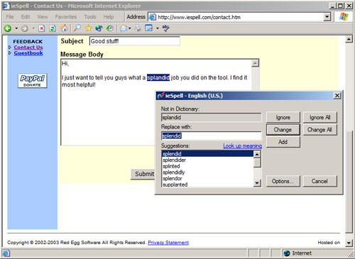 Bạn có thể sử dụng ieSpell để kiểm tra chính tả cho email, các tin nhắn gửi lên diễn đàn, và thậm chí cả các trang web đã có sẵn chức năng kiểm tra chính tả như Yahoo! Mail.