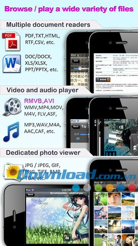 Ứng dụng iFileExplorer hỗ trợ mở trực tiếp các loại file sau: