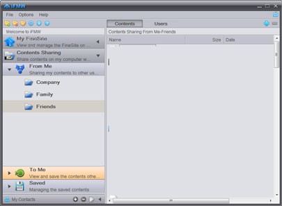 Các cửa sổ chính trong iFMW cung cấp cho người dùng khả năng lựa chọn các tập tin cần chia sẻ một cách dễ dàng.