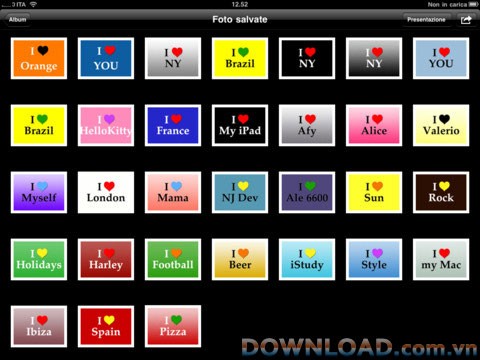 iLove for iPad là công cụ đơn giản, cho phép bạn dễ dàng tạo ra những hình nền độc đáo mang thông điệp I Love... trên iPad.