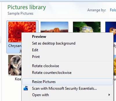 Bạn có thể sử dụng Image Resizer Powertoy Clone for Windows, phiên bản cải tiến của Image Resizer Powertoy for Windows XP, tương thích với Windows Vista và Windows 7 (cả 32-bit và 64-bit).