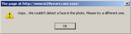 Trong trường hợp này, bạn cần thay thế bằng một bức ảnh khác có chất lượng tốt hơn. Khi ảnh được chấp nhận, trang web sẽ tự động chuyển hướng đến trang kết quả, nơi bạn có thể thấy diện mạo của mình sau nhiều năm.