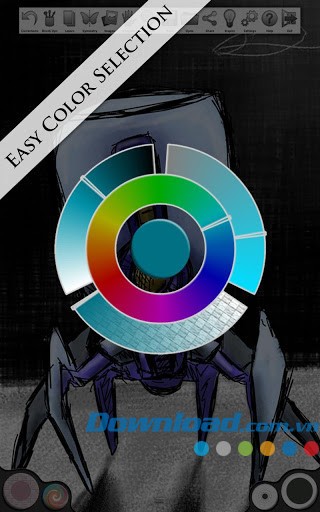 Giao diện người dùng của Infinite Painter Free được thiết kế đặc biệt để giúp người dùng hiện thực hóa ý tưởng một cách nhanh chóng, với bánh xe màu bán kính độc đáo và thực đơn hoạt động trực quan.
