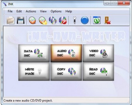 Giao diện của INK hiển thị dưới dạng biểu tượng tùy chọn, cung cấp 6 chức năng ghi đĩa khác nhau. Bạn có thể chọn bất kỳ tùy chọn nào để bắt đầu, sau đó lựa chọn loại đĩa cụ thể trong giao diện chính.