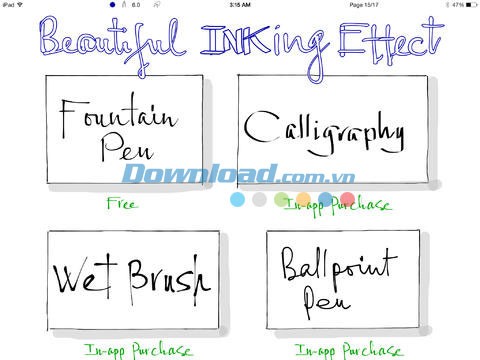 Inkredibe for iPad giúp bạn tạo ra những bản ghi chú viết tay đẹp mắt và chuyên nghiệp, với hiệu ứng mực viết chân thực và sống động. Kho bút vẽ đa dạng cho phép bạn tạo ra những tác phẩm đồ họa vector hoàn hảo.