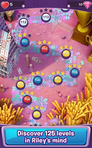 Người chơi sẽ cùng đồng hành với các cảm xúc của Riley trong một cuộc phiêu lưu thú vị, kết hợp và phân loại các bong bóng màu sắc khi khám phá những vùng đất đầy sáng tạo lấy cảm hứng từ bộ phim – hòn đảo Gia đình, Nhà máy Giấc mơ, Vùng đất Trí tưởng tượng và nhiều hơn nữa.