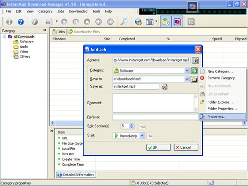InstantGet chia một tập tin thành các phần và tải mỗi phần song song, giúp tăng tốc độ download lên đến 5 lần.