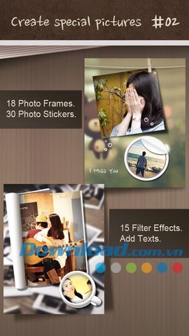 Ứng dụng hỗ trợ thêm sticker ảnh với 30 phong cách khác nhau, đáp ứng mọi nhu cầu sáng tạo.