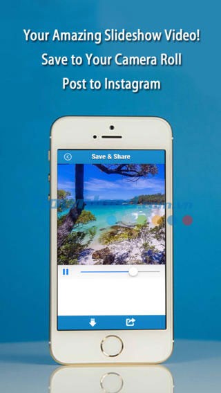 InstaVideo Free for iOS cho phép bạn lựa chọn ảnh từ tài khoản Instagram cá nhân, những ảnh bạn đã thích (Like) và toàn bộ nguồn cấp dữ liệu (feed) Instagram để tạo nên những video ảnh ấn tượng. Bạn cũng có thể thêm nhạc nền để tăng thêm sự sống động và cuốn hút cho câu chuyện của mình. Ứng dụng cung cấp sẵn nhiều bản nhạc ngẫu nhiên để bạn lựa chọn.