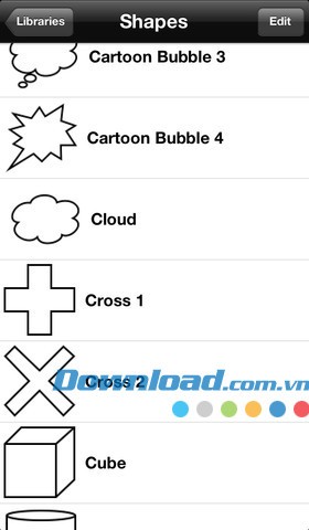 Ứng dụng đi kèm với một thư viện họa hình tùy chỉnh phong phú, chứa nhiều hình khối dựng sẵn để người dùng lựa chọn.