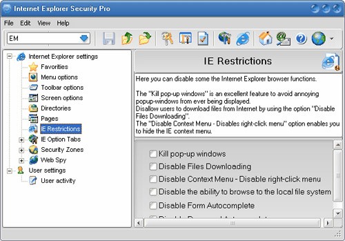 Với Internet Explorer Security Pro, bạn có thể kiểm soát hoàn toàn Internet Explorer ở mức gần như tuyệt đối mà không cần can thiệp sâu vào các thiết lập phức tạp của trình duyệt.