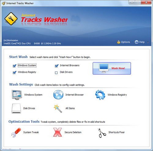 Chỉ với một thao tác nhấp chuột duy nhất, Internet Tracks Washer có khả năng xóa bỏ các tập tin tạm của hệ điều hành Windows, lịch sử duyệt web, danh sách các chương trình đã chạy, thông tin các tập tin đã mở hoặc lưu, danh sách tài liệu được sử dụng gần đây.