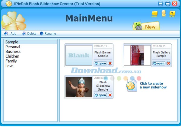Điểm nổi bật của phần mềm là giao diện được thiết kế đơn giản, trực quan, giúp người dùng dễ dàng tạo trình chiếu ảnh flash chỉ với vài thao tác cơ bản.