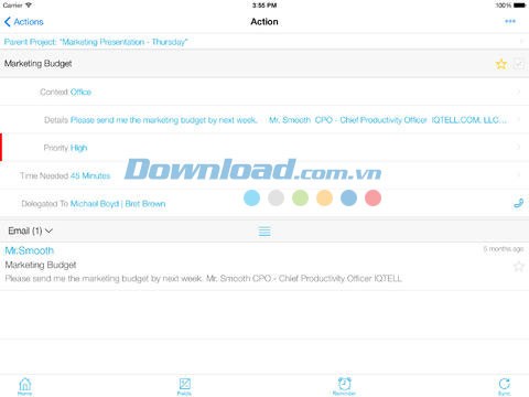 Ứng dụng IQTELL Email App for iOS hỗ trợ tối ưu cho năng suất làm việc, quản lý danh sách công việc cần làm (To Do) và phương pháp Getting Things Done (GTD).