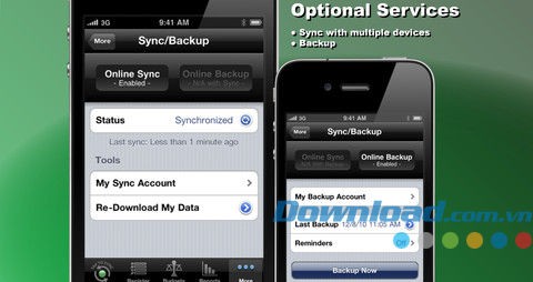 iReconcile cung cấp một tiện ích sao lưu dữ liệu, cho phép người dùng thực hiện sao lưu và khôi phục thông tin qua kết nối mạng Edge, 3G hoặc WiFi.