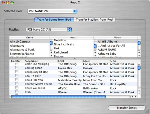 Để bắt đầu, bạn chỉ cần khởi động iRepo và kết nối thiết bị iPod, iPad hoặc iPhone của mình. Ngay lập tức, iRepo sẽ hiển thị danh sách các bài hát trên thiết bị, được trình bày trên một giao diện thân thiện và dễ sử dụng, tương tự như giao diện duyệt nhạc trong iTunes.