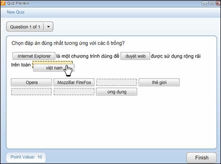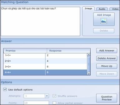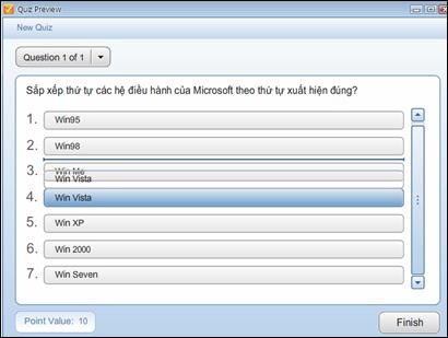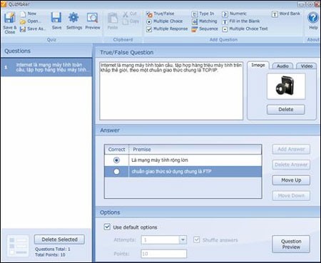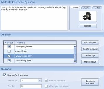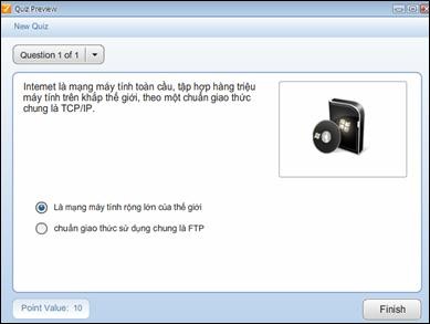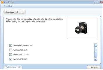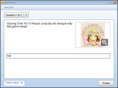 Sau khi hoàn tất việc nhập câu hỏi và các lựa chọn đáp án, bạn hãy nhấp vào nút "Question Preview" trong hộp thoại QuizMaker để xem thử câu hỏi đó.