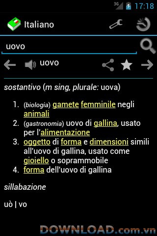 Ứng dụng từ điển tiếng Ý này hoạt động hoàn toàn offline, cung cấp định nghĩa của từ ngữ dựa trên nguồn dữ liệu Italian Wiktionary.