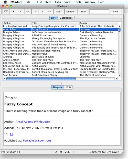 Nhiều bộ sưu tập trích dẫn có thể được lưu trữ và quản lý một cách tập trung trong iWisdom.