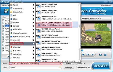 Tiếp theo, trong mục Profile, hãy chọn định dạng đầu ra mong muốn. IWisoft Video Converter hỗ trợ hầu hết các định dạng phổ biến trên các thiết bị đa phương tiện kỹ thuật số như iPod, iPhone, Apple TV, PSP, PS3, Zune, Creative Zen, Xbox 360, Archos, cùng với tất cả các định dạng video thông dụng trên máy tính.