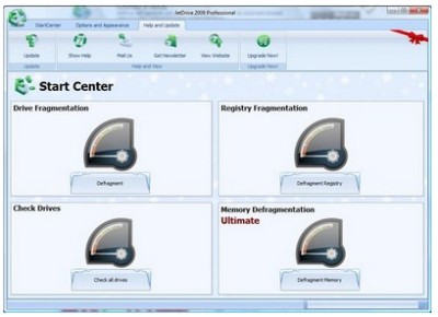- : Thực hiện chống phân mảnh cho ổ cứng (bằng cách nhấn vào nút Defragment). Với công nghệ JetSmart, Jet Drive không chỉ giúp quá trình chống phân mảnh hiệu quả hơn 20% so với phương pháp thông thường của Windows, mà thời gian thực hiện cũng được rút ngắn đáng kể.- : Chống phân mảnh cho registry của hệ thống (nhấn vào nút Defragment Registry).- : Kiểm tra thông tin của ổ cứng, như các phân vùng, dung lượng trống, dung lượng đã sử dụng… từ đó phát hiện các lỗi có thể xảy ra trên ổ cứng và tiến hành sửa chữa (nếu các lỗi không quá nghiêm trọng).