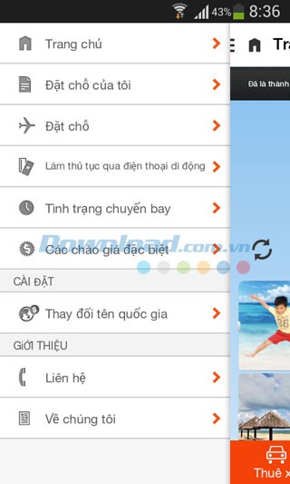 Tại trang chủ ứng dụng, bạn sẽ thấy các gợi ý về các chuyến bay giá rẻ, cùng với các tùy chọn hữu ích như: dịch vụ thuê xe, đặt phòng và khách sạn.