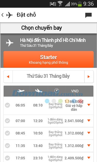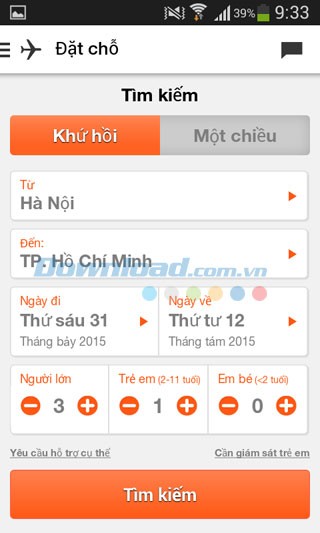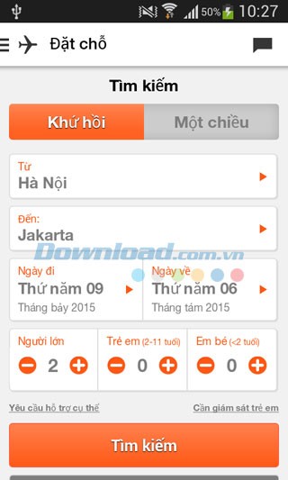 Quá trình đặt vé vô cùng đơn giản. Bạn chỉ cần tìm kiếm chuyến bay, nhập địa điểm, thời gian đi, thời gian về và số lượng hành khách. Sau đó, chọn chuyến bay phù hợp với ngân sách và lịch trình của bạn. Các chuyến bay được hiển thị chi tiết với thông tin về giờ khởi hành, giờ hạ cánh, thời gian bay và giá vé.