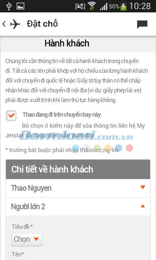 Người dùng có thể dễ dàng đặt vé máy bay cho các chuyến đi sắp tới và thêm các tiện ích bổ sung theo nhu cầu.