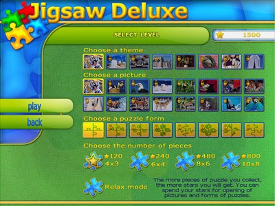 Tương tự các trò chơi ghép hình khác, Jigsaw Deluxe khơi gợi sự tò mò và mong muốn khám phá ẩn sau mỗi mảnh ghép sống động. Ngoài lối chơi truyền thống, nơi người chơi tự tay sắp xếp các mảnh để hoàn thành bức tranh, Jigsaw Deluxe còn giới thiệu một chế độ chơi độc đáo.