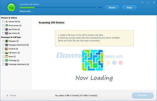 Chỉ cần một thao tác nhấn vào nút "" , chương trình sẽ bắt đầu quá trình quét và phân tích iPhone, iPad hoặc iPod nhằm xác định các dữ liệu bị mất.
