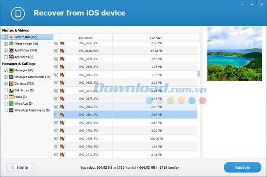 Jihosoft Mobile Recovery for iOS có khả năng phục hồi hơn 10 loại dữ liệu khác nhau từ iPhone, iPad và iPod touch, bao gồm: ảnh trong cuộn máy ảnh, Photo Stream, hình ảnh và video, tin nhắn văn bản, các tập tin đính kèm tin nhắn, danh bạ, lịch sử cuộc gọi, ghi chú, dữ liệu WhatsApp , các tập tin đính kèm WhatsApp và nhiều loại dữ liệu khác.