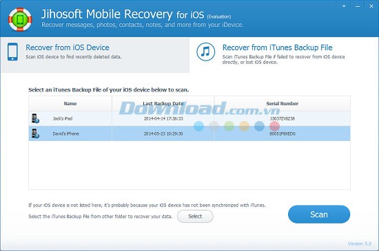 Jihosoft Mobile Recovery for iOS tương thích với hầu hết các thiết bị di động, bao gồm: iPhone 5S, iPhone 5C, iPhone 5, iPhone 4S, iPhone 4, iPhone 3GS, iPad Air, iPad mini với màn hình Retina, iPad 2, iPad 1, The New iPad, iPod Touch 5, iPod touch 4, và nhiều thiết bị khác.