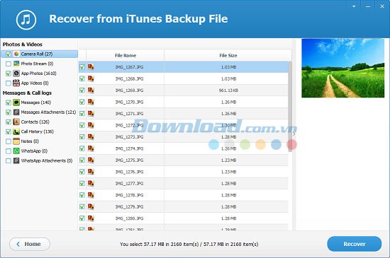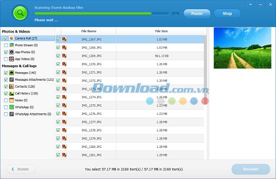 Phần mềm Jihosoft Mobile Recovery for iOS sẽ tiến hành quét và phân tích dữ liệu trong tập tin sao lưu iTunes. Toàn bộ dữ liệu được trích xuất từ bản sao lưu sẽ được hiển thị theo các danh mục khác nhau.