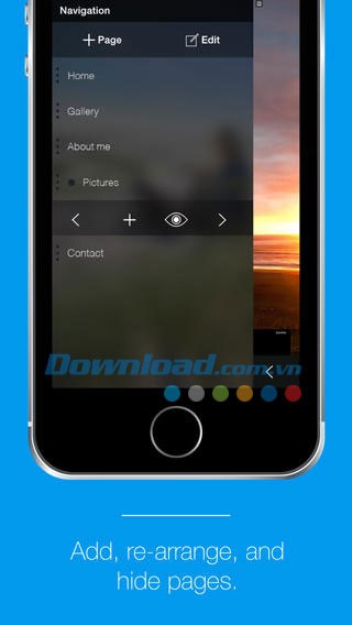 Chỉnh sửa menu điều hướng của trang web và tạo số lượng trang không giới hạn. Sắp xếp lại các trang bằng cách chạm và kéo chúng đến vị trí mong muốn. Bạn cũng có thể ẩn, đổi tên và xóa các trang.