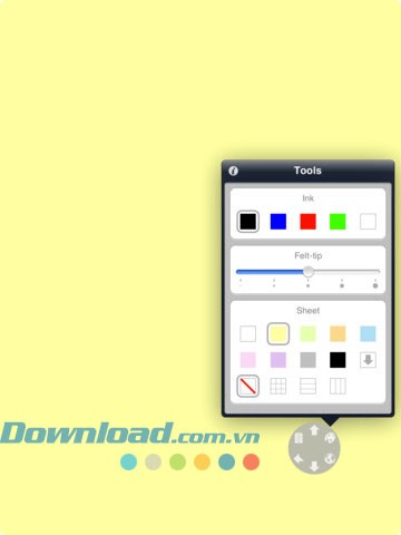 Người dùng có thể lựa chọn màu mực (đen, xanh lá cây, đỏ, xanh da trời và trắng) và điều chỉnh độ dày của bút, công cụ viết, vẽ và tẩy trong mỗi thao tác.