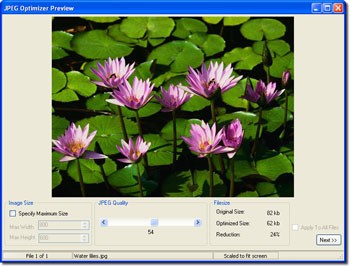 JPEG Optimizer Pro là một ứng dụng được thiết kế để hỗ trợ người dùng giảm dung lượng, tối ưu hóa chất lượng của từng ảnh JPEG. Đồng thời, phần mềm còn cho phép tự động tối ưu hóa hàng loạt hình ảnh với các tùy chỉnh khác nhau.