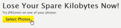 Tiếp theo, nhấn vào Select Photos để tải ảnh lên JPEGMini. Thời gian tải phụ thuộc vào kích thước của file ảnh.