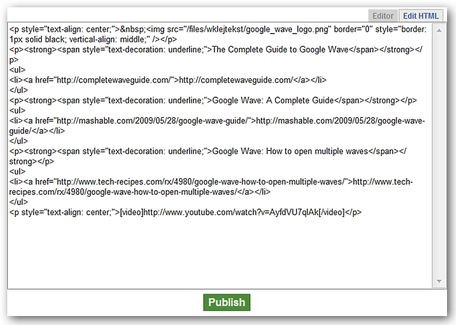 Và đây là giao diện trong cửa sổ Edit HTML, nơi bạn có thể sửa đổi hoặc chèn thêm các thẻ HTML nếu cần.
