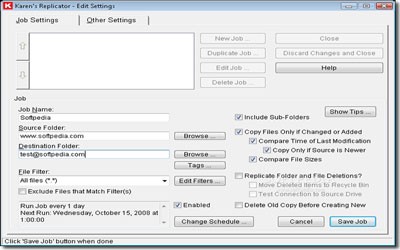 Karen's Replicator tích hợp tính năng lập lịch, giúp tự động hóa quá trình sao lưu file, thư mục và ổ đĩa. Giao diện của tiện ích hệ thống này được thiết kế đơn giản, trực quan, giúp người dùng dễ dàng tạo, sao chép và chỉnh sửa các tác vụ.