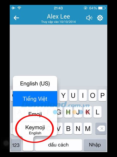Khởi động bất kỳ ứng dụng nhắn tin hoặc mạng xã hội nào, mở cửa sổ soạn tin nhắn. Để chuyển sang bàn phím Keymoji, hãy giữ và chọn biểu tượng hình quả địa cầu trên bàn phím ảo, sau đó chọn Keymoji từ danh sách để bắt đầu sử dụng.