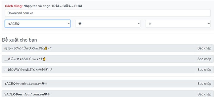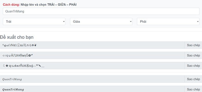 Click vào một trong các kiểu định dạng chữ được đề xuất ở phía dưới. Cụm từ bạn vừa nhập sẽ được sao chép tự động. Bạn có thể dán nội dung này vào tên nhân vật, tên game hoặc sử dụng cho các trang mạng xã hội như Facebook, Instagram.