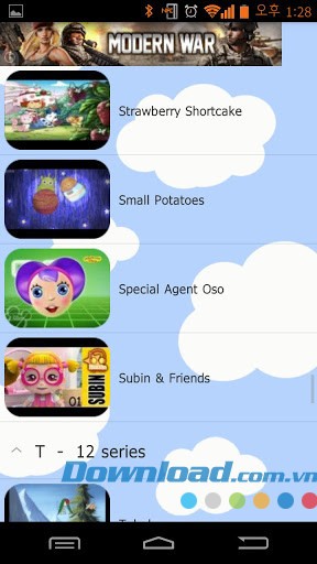 Kids Movie Free for Android sở hữu một thư viện phong phú với hơn 5000 video, được phân loại thành 91 nhóm phim hoạt hình nổi tiếng từ khắp nơi trên thế giới, được thiết kế đặc biệt cho đối tượng thiếu nhi.