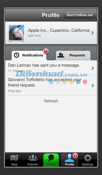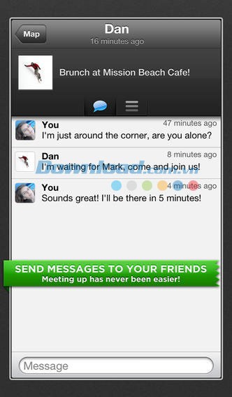 Tin nhắn: Giờ đây, bạn có thể gửi tin nhắn riêng tư trực tiếp đến bạn bè ngay trong ứng dụng. Khi phát hiện bạn bè ở gần vị trí bạn quan tâm, hãy nhanh chóng gửi một lời nhắn chỉ với một chạm.