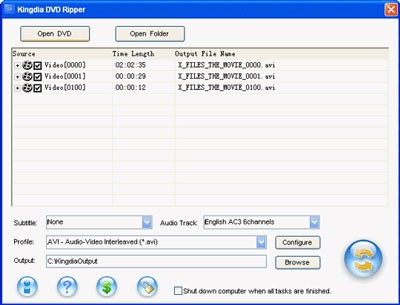 Kingdia DVD Ripper hỗ trợ xử lý nhiều tập tin phim cùng lúc. Bạn có thể lựa chọn từng chương hoặc video cụ thể để chuyển đổi.