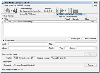 Khi bắt đầu quá trình mã hóa, bạn có thể lựa chọn từ các bộ mã hóa như Bonk Audio Encoder, FAAC MP4/AAC Encoder, FLAC Audio Encoder, LAME MP3 Encoder, Ogg Vorbis Encoder, và WAVE Out Filter.