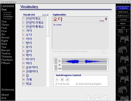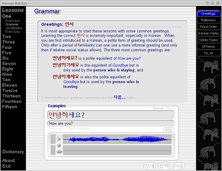 Korean HakGyo là một chương trình được thiết kế để giảng dạy ngữ pháp tiếng Hàn cơ bản thông qua các ví dụ minh họa sinh động và dễ tiếp thu.
