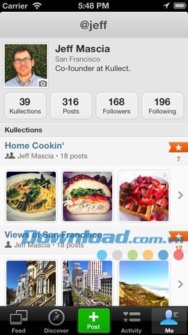 Không chỉ vậy, Kullect for iOS còn là một nền tảng để bạn khám phá những nội dung mới mẻ, được chia sẻ bởi những người dùng có chung sở thích. Bạn cũng có thể dễ dàng chia sẻ nội dung yêu thích lên các mạng xã hội khác như Facebook và Twitter .
