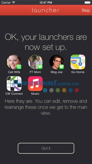 Thực hiện cuộc gọi, gửi tin nhắn, email hoặc gọi FaceTime với những người liên lạc thường xuyên. Ảnh đại diện của họ sẽ hiển thị trực tiếp trong bộ Launcher.