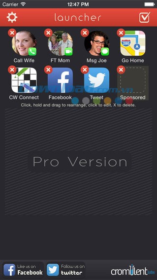 Việc nâng cấp lên phiên bản Pro sẽ loại bỏ bộ khởi động của nhà tài trợ, đồng thời mở rộng khả năng thêm tới 3 hàng nữa. Điều này nâng tổng số bộ khởi động lên 20 trên iPhone và 30 trên iPad.